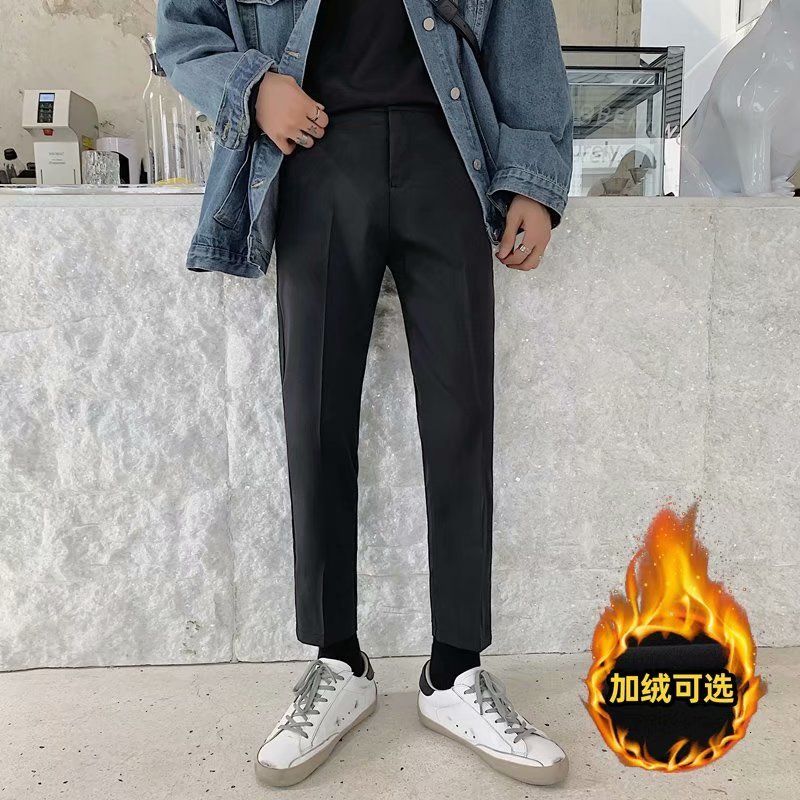 Mens Pants Plus Velvet Black Slim Fashion Solid Color Business Casual Dress Men Streetwear Wild Harem Trousers Mens From Tutucloth 34 48 Dhgate Com
